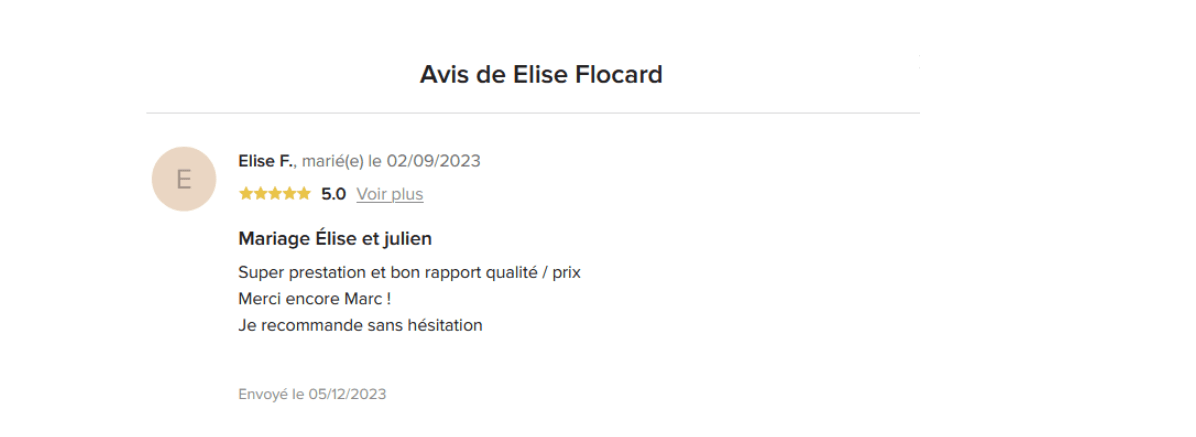 ⭐ Vous pouvez également laisser un avis public sur Google afin d’aider d’autres futurs mariés à nous découvrir.